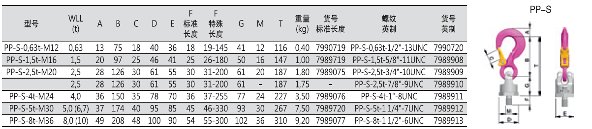 ·无突出钩尖;锻制安全闭锁与钩头相咬合,可防止侧向弯曲;加粗的钩头可避免错误操作并弯曲